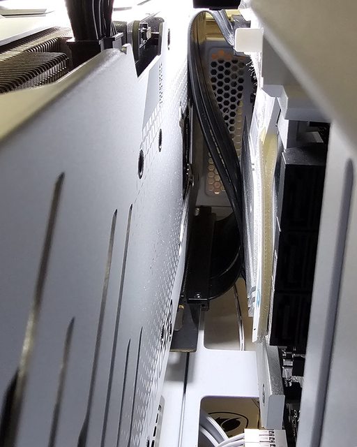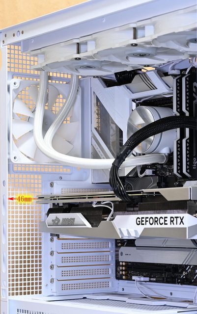 ▼直立安裝MSI GEFORCE RTX 4070 Ti GAMING X TRIO WHITE(337×140×62mm)時,顯示