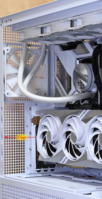 ●前方及頂部可裝360mm一體式水冷散熱排,電源艙隔板可裝240mm一體式水冷散熱排,後