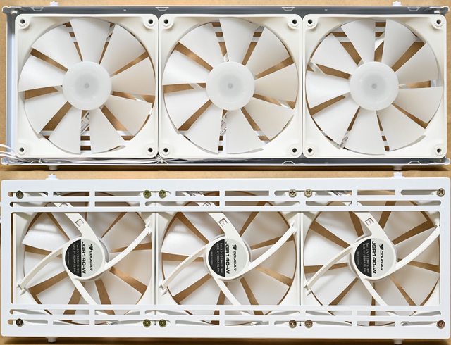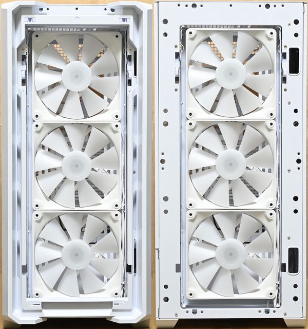 ○前方/電源艙隔板/後方/頂部可裝最多9個120mm風扇,前方預裝3個JGR140-W ARGB PWM