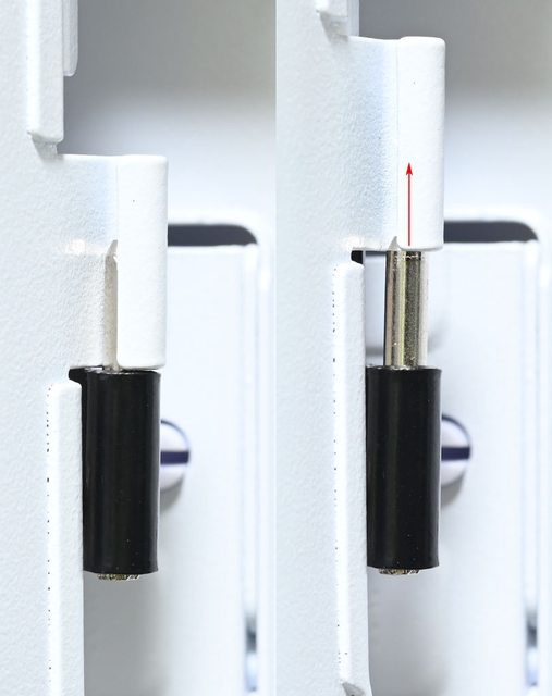 ▼右側前方遮線蓋板左邊安裝鉸鍊,右邊有2個磁吸固定磁鐵(紅色框)