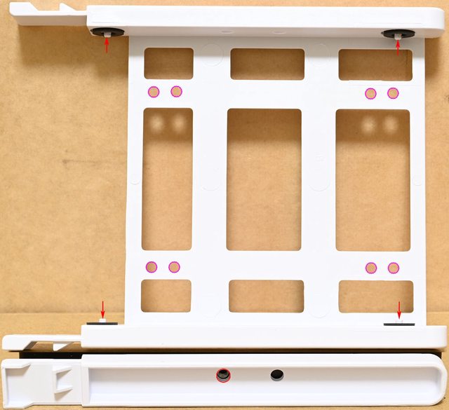 個螺絲固定(紅色框),可在長條形固定孔內任意調整位置