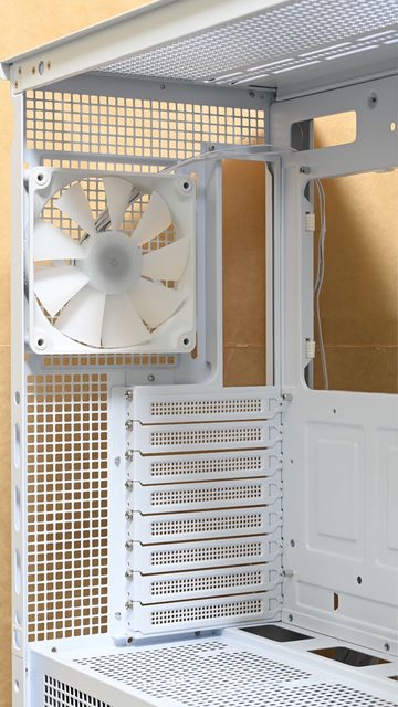 ▼後方預裝1個JGR120-W ARGB PWM風扇,8個標準擴充槽均安裝可重複使用的擋板