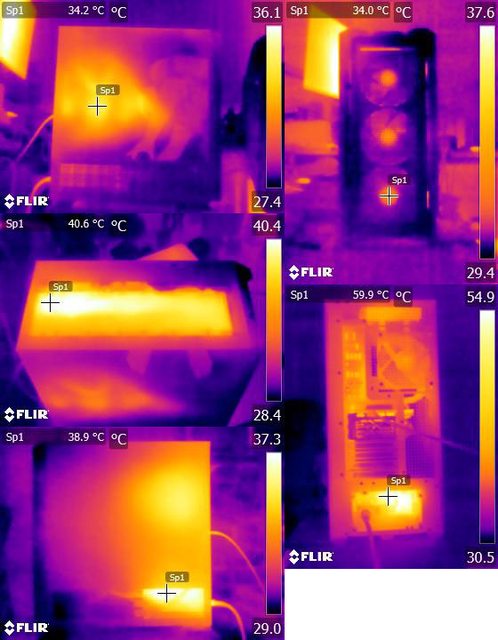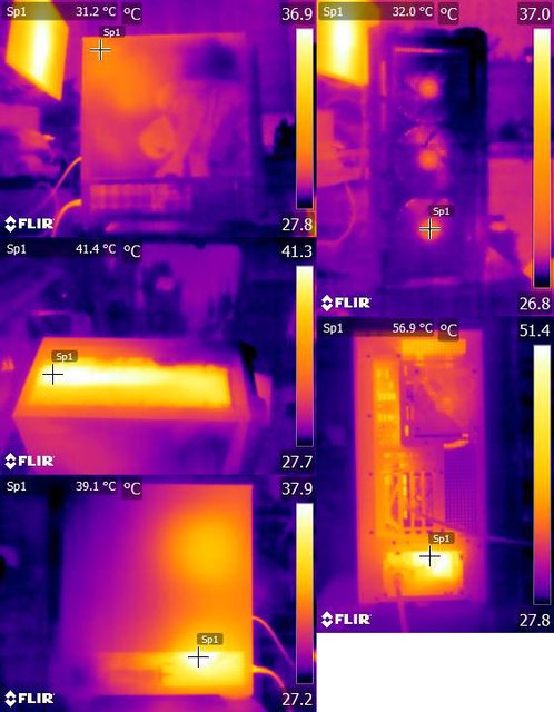 ▼顯示卡水平安裝的CPU+GPU高負載30分鐘後的紅外線熱影像圖