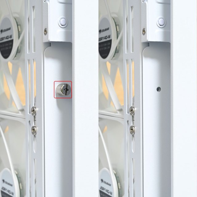 ●前方網孔板、左/右側板、左側下方網孔板都採用免螺絲快拆設計,拆裝無需使用工具
