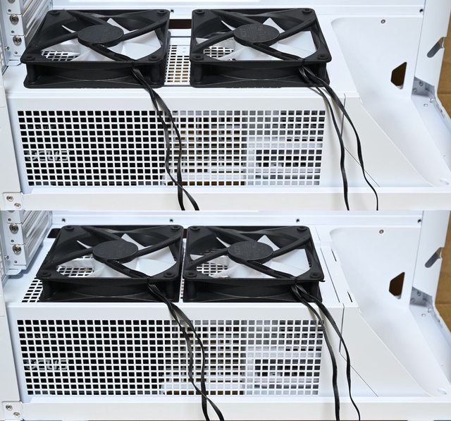 ●前方/電源艙隔板/後方/頂部提供最多9個120mm風扇安裝空間,前方預裝3個JGR140-W