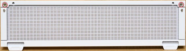 ▼正面金屬網孔板使用卡榫固定,從左上及右上角落施力往外拉即可取下
