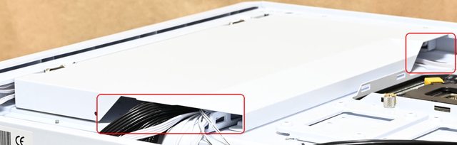 ▼打開右側前方遮線蓋板後可見到內部整線空間
