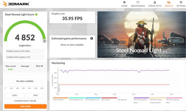 Steel Nomad Light 測試成績約 40 FPS