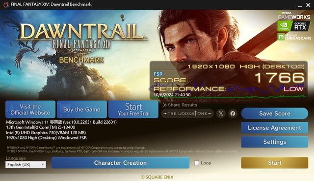 Final Fantasy XIV Dawn Trail(Core i5 13400)