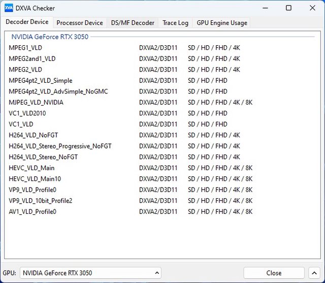 影音規格支援方面 3050 支援主流AV1、VP9、(H.265)、H.264