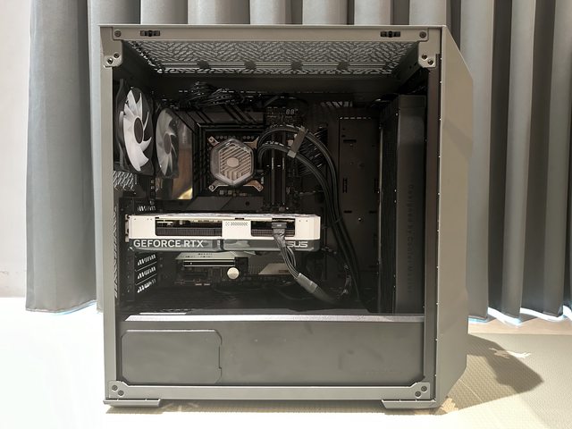 空間提供合適散熱規模的客製化散熱器、電源,且水冷管、電源線長度皆針對機殼設置,