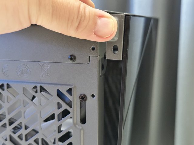 玻璃側板為卡扣固定,拆除後方固定用手轉螺絲後即可向外拆除。