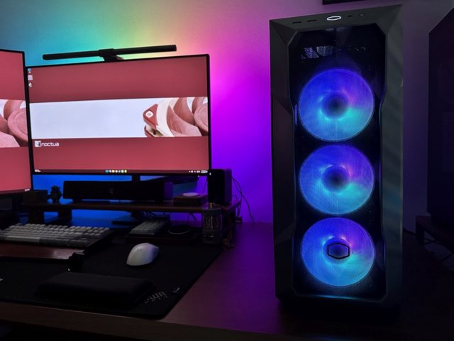 最後還是以使用12VHPWR接頭的4070S白色短卡完成裝機,這一點白也算起到跳色效果啦!