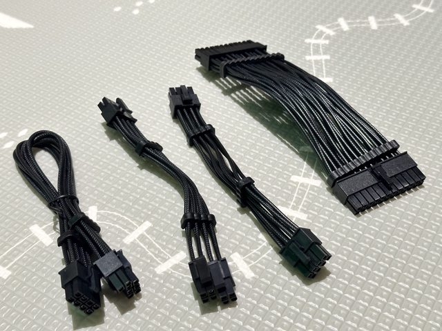24P、CPU 8P、4+4P及PCI-E 8P。線材採用目前流行的壓紋線,質地較柔軟且便於彎曲。