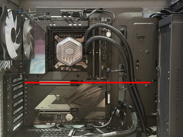 雖然30.5cm的長度還不足以搆到水冷管,不過目測使用更長的顯示卡還是能順利跨過水冷
