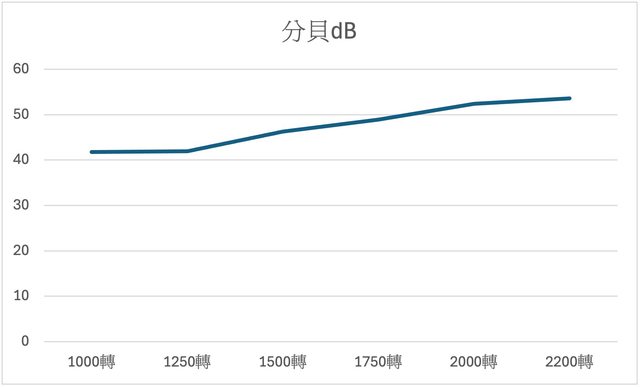 滿轉速2200轉時最高50出頭分貝