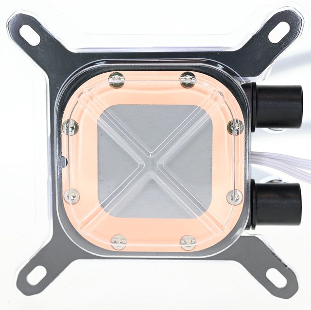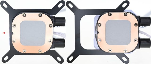 ▼水冷頭處理器接觸面使用星型沉頭螺絲固定