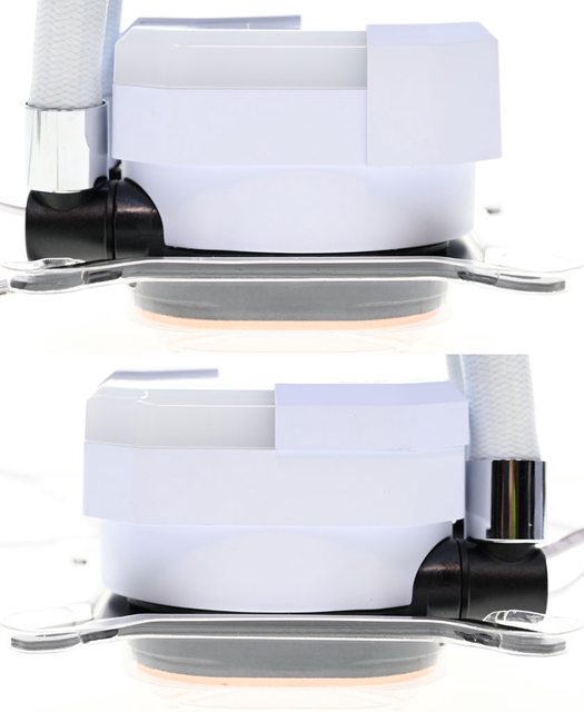 ▼水冷頭尺寸69×69×53.1mm,包含進/出水管接頭的最大寬度84.5mm,水冷頭頂部有乳