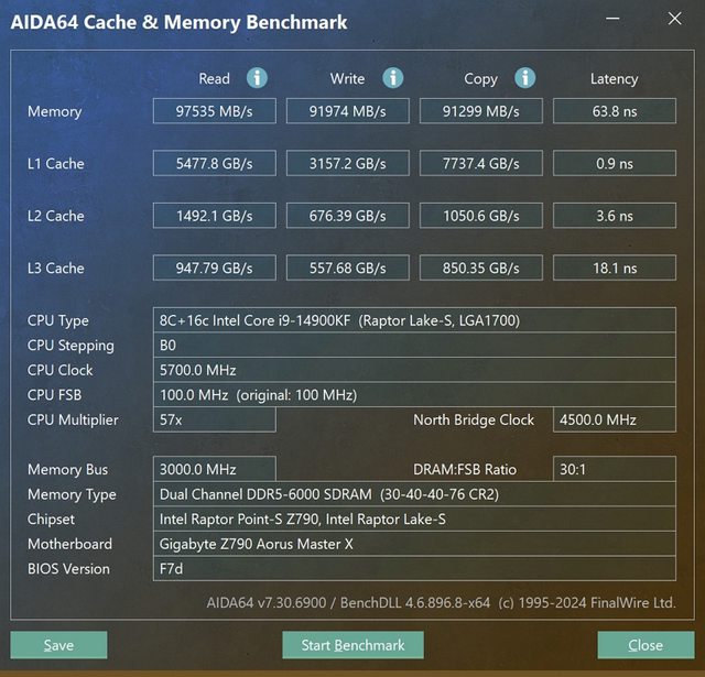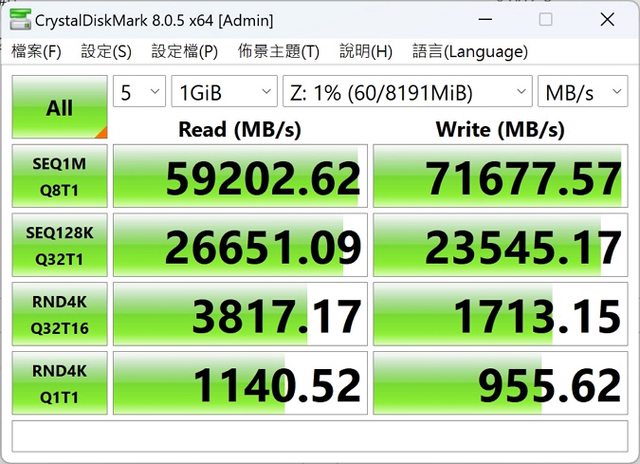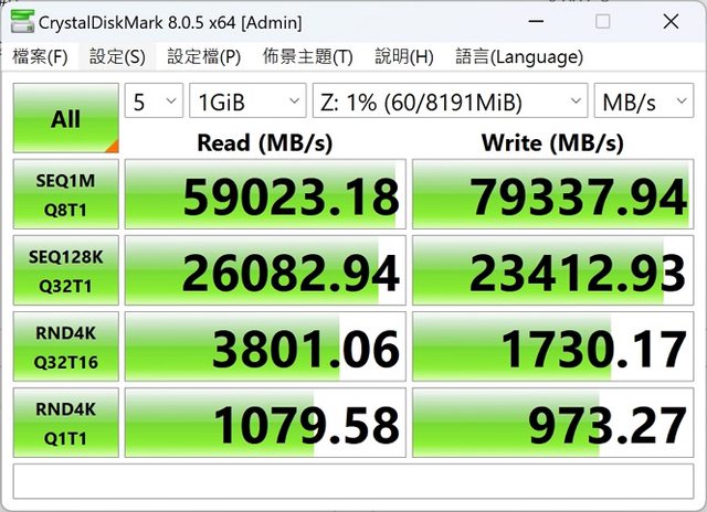 讀取97535MB/s寫入97974MB/s延遲63.8