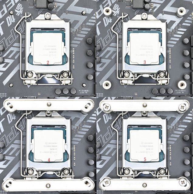 LGA1200/115x托架固定柱有黑色墊片那面朝下鎖入固定螺牙(3),4個固定柱完全鎖入固定