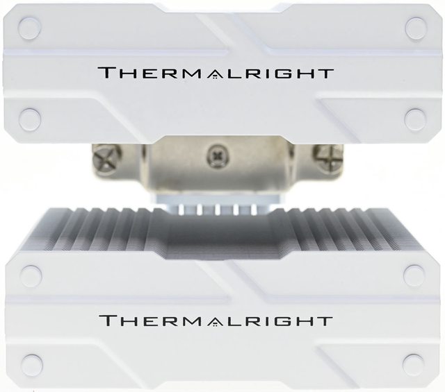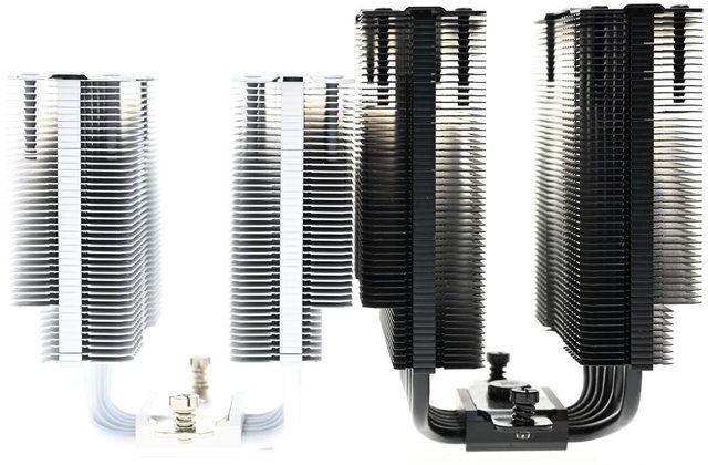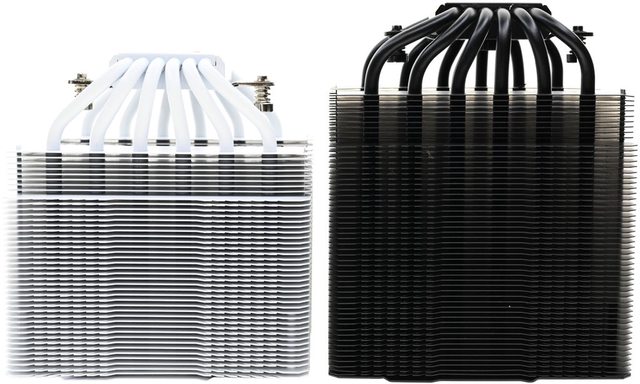 ▼PEERLESS ASSASSIN 120 MINI WHITE(左)前塔/後塔下方8片散熱鰭片縮小,使用皿頭螺