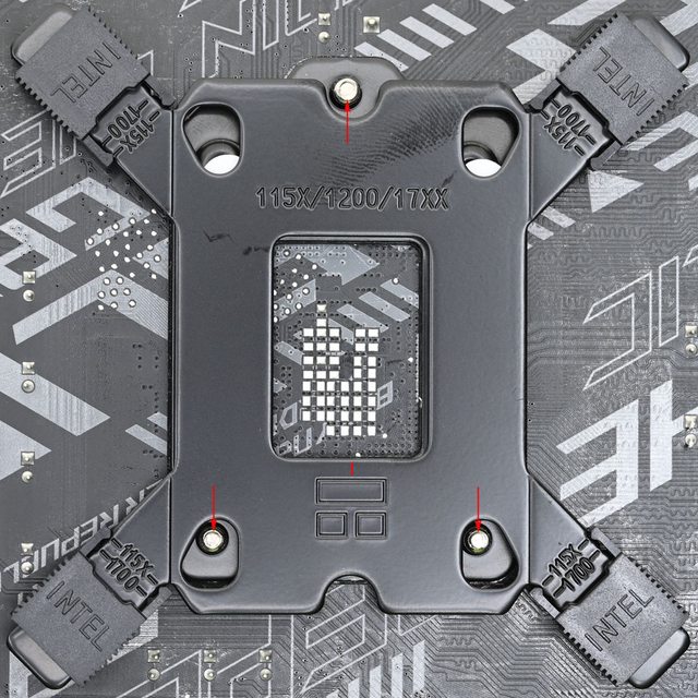準處理器扣具底板3個螺絲鎖點位置(紅色箭頭)