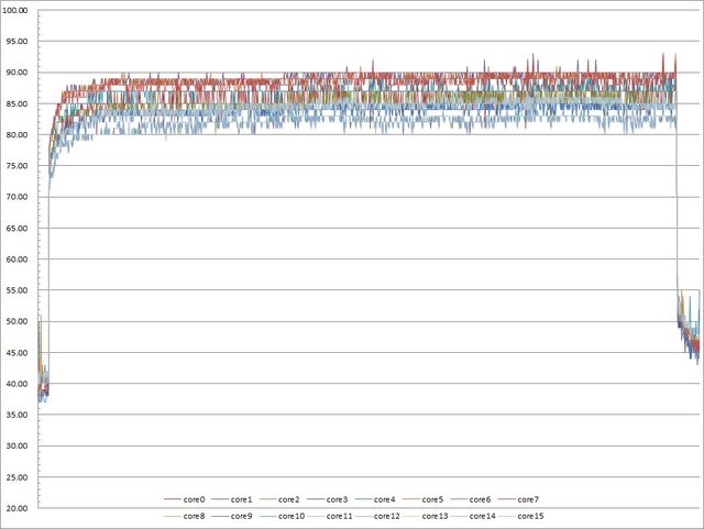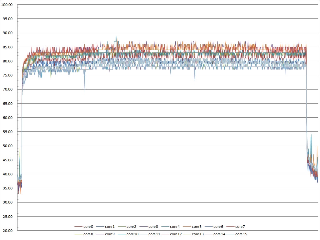 ▼高負載30分鐘CORE TEMP溫度記錄圖