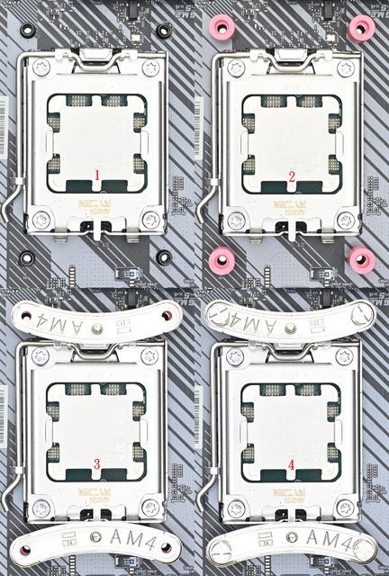 ▼安裝於AMD AM5/AM4平台時,需使用紅色AMD套管及AMD托架固定螺絲。將主機板原裝散