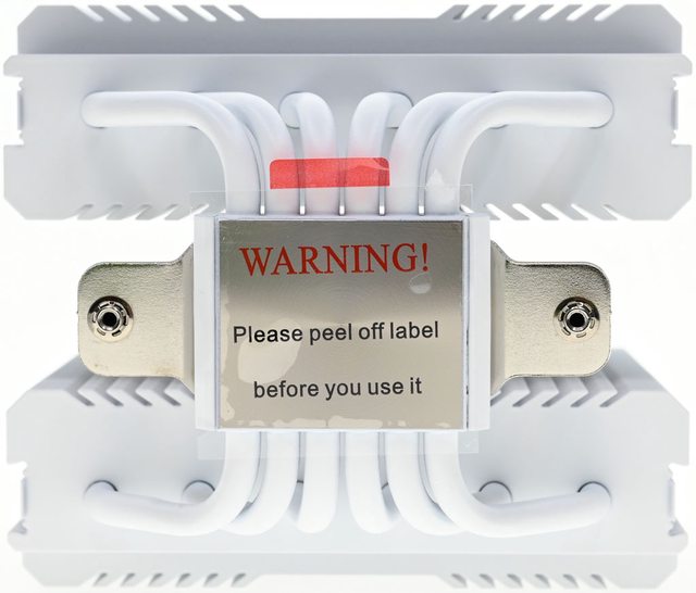 ▼散熱器底座的處理器接觸面有保護貼,上面用英文標示"警告!使用前請撕除保護貼"