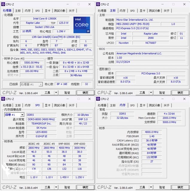 同樣由 CPU-Z 來檢視 Intel Core i9 13900K 測試平台。