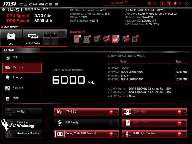 用 MSI MEG Z690I UNIFY 並將 BIOS 更新至 7D29v1G 版本,來測試 T-FORCE XTREEM