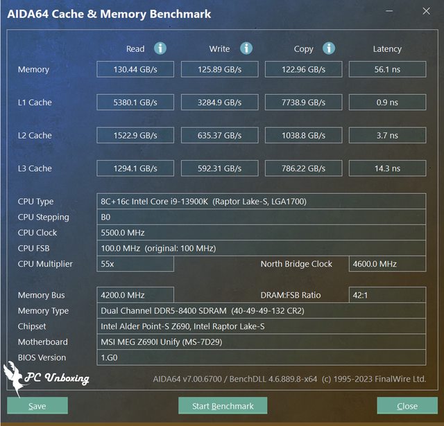 接著使用 AIDA64 Cache & Memory Benchmark 測試 T-FORCE XTREEM DDR5 的讀寫性能,