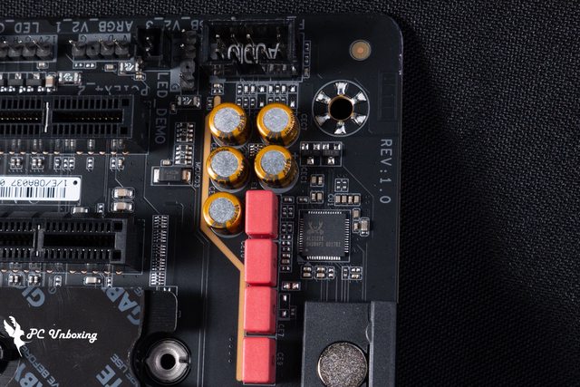 有兩個 ARGB_V2 5v 3-Pin 插槽和 RESET 重啟快速按鍵。
