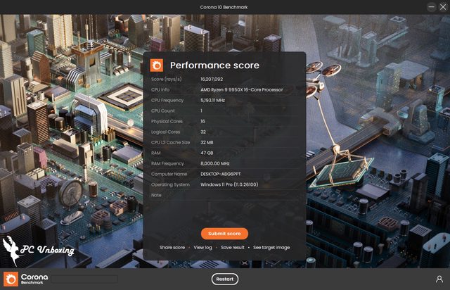 遊戲模擬測試的 Fire Strike 中,AMD Ryzen 9 9950X 獲得 49973 的物理分數;而