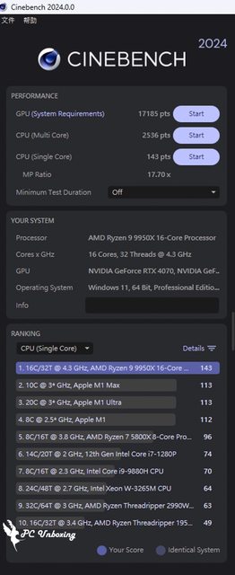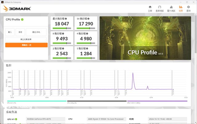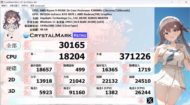 9950X 處理器進行測試,並且額外使用的 AORUS GeForce RTX 4070 MASTER 12G 顯示卡