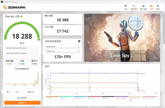 1440p 畫質 DirectX 12 GPU API 情境遊戲模擬測試的 Time Spy 中,獲得 17742 的