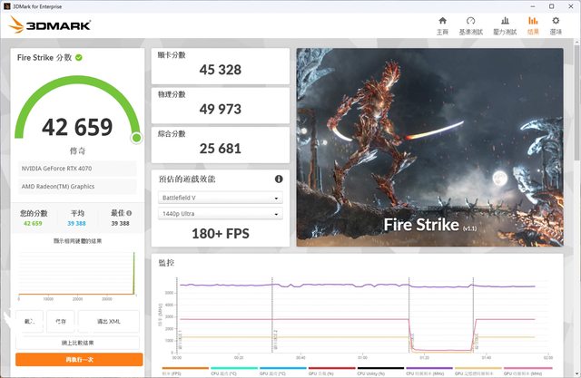 ,搭配 NVIDIA RTX 4070 顯示卡來進行測試,在 1080p 畫質 DirectX11 GPU API 情境