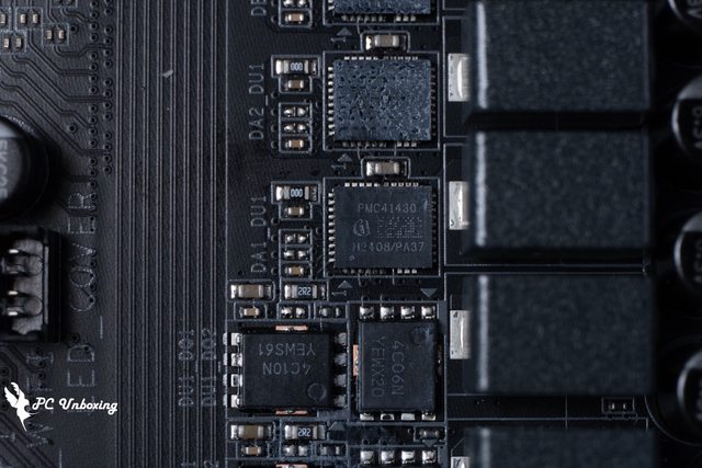 主機板在 VRM 供電區塊設有 VRM Thermal Armor Advanced,在 VRM 散熱裝甲之中嵌有