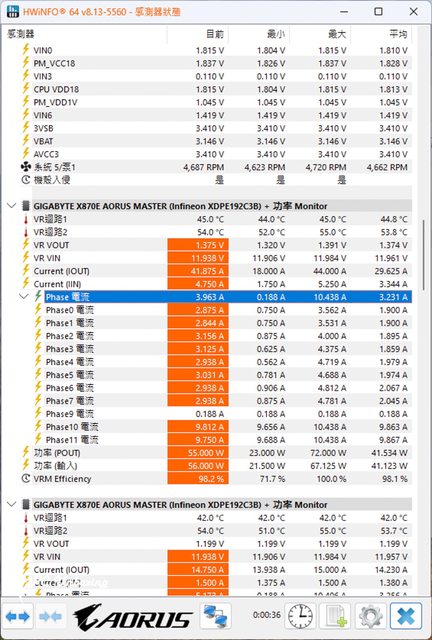 在經過以上兩小時的各種跑分測試軟體過後,GIGABYTE X870E AORUS MASTER 主機板於裸
