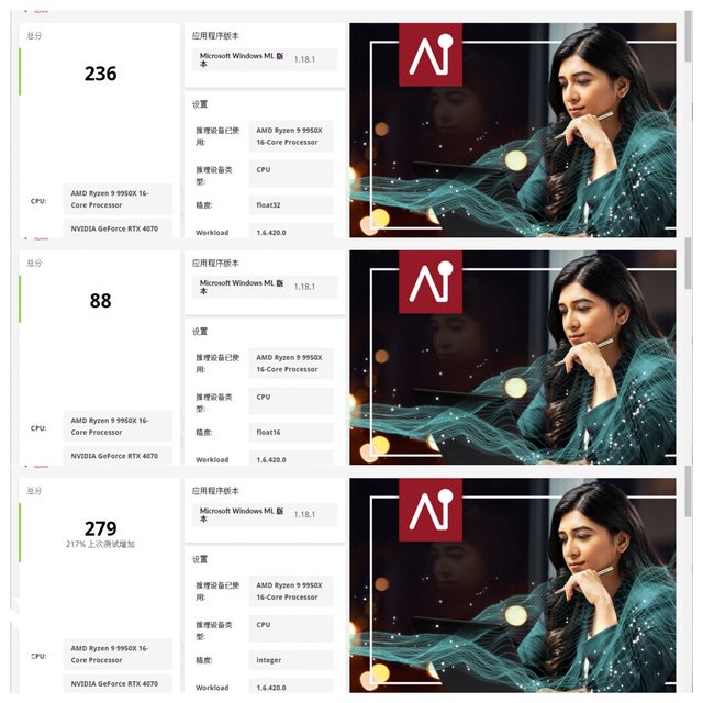 ↑AI Computer Vision Benchmark 使用 Microsoft® Windows ML 測試成績。