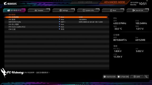 ↑本次搭配 XPG LANCER RGB DDR5 8000MT/s 2X 24GB CL 40-48-48-128 1.45V (