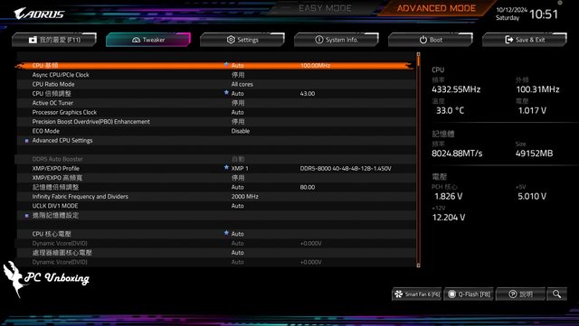 能,且搭配 DDR5 8000 MT/s 記憶體也是直接無腦開啟進行測試,即便它沒有在 QVL 之