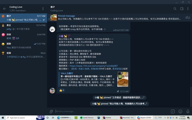推 Belieeve: 看截圖是求職徵才群組嗎 11/10 23:55
