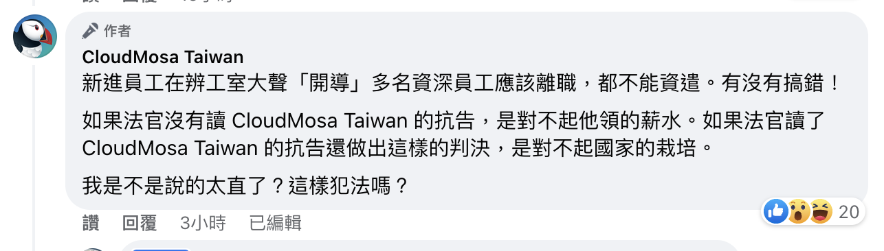 → odddriver : 違法解僱說是霸凌 不愧是台灣老闆 01/03 16:29