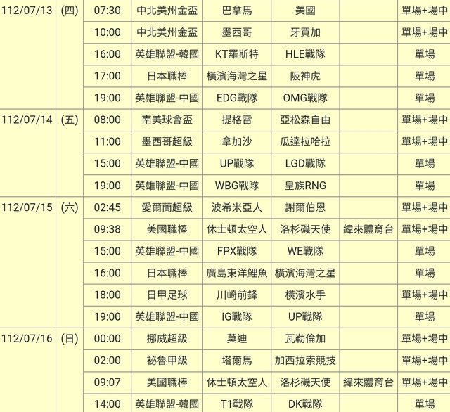 標題[情報] 112-07-13單場場中