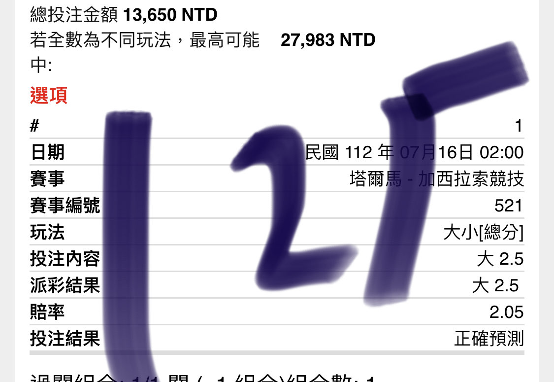 → w2658741: 等中場1.5 2.5大追完蓋牌223.137.192.243 07/16 02:18