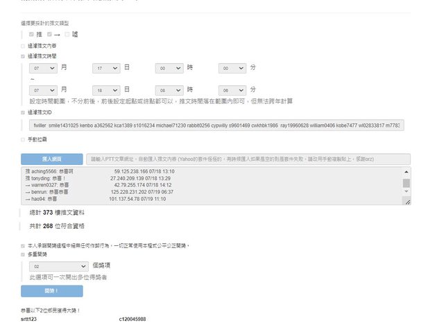 推 c120045988: 謝謝yuyulove52和謝謝府樂幫忙抽 101.9.103.134 07/19 23:59