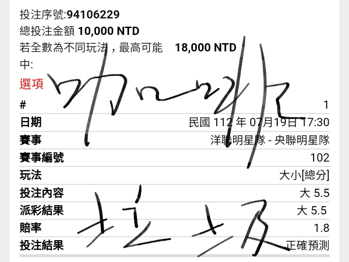 → richard520: 居然上三,我快笑死!結果賽前2.5大賠 60.248.166.132 07/20 00:42