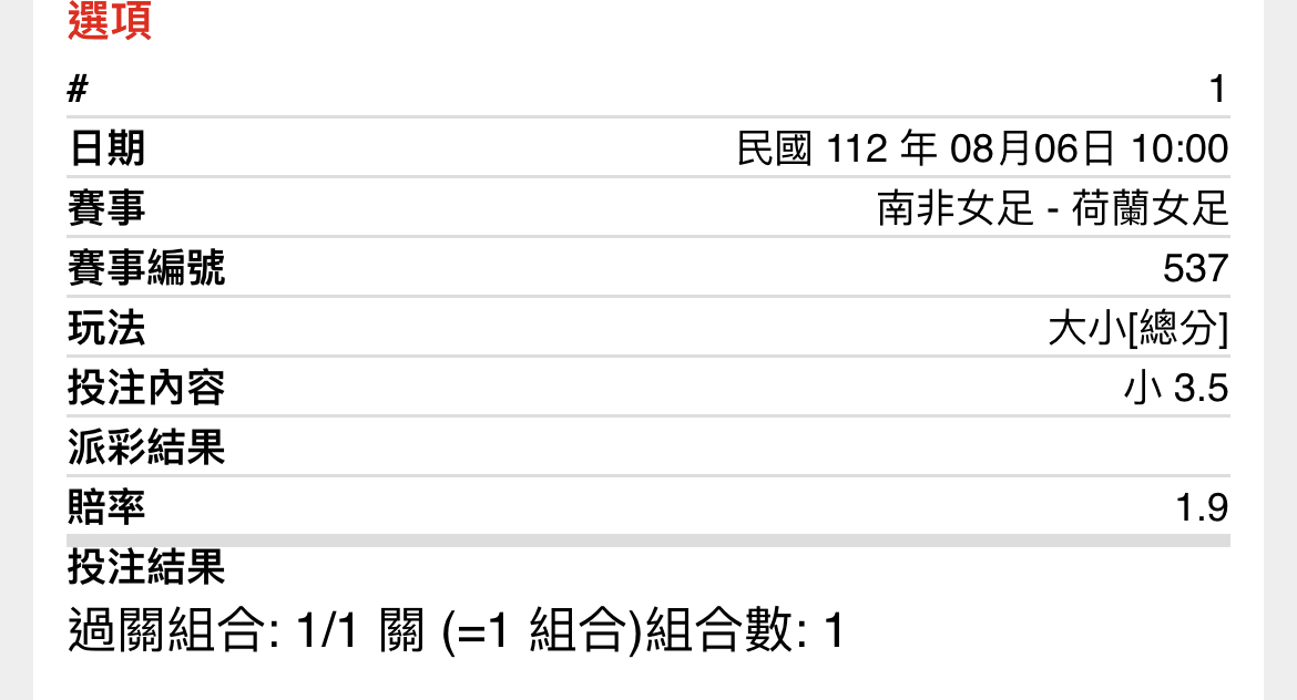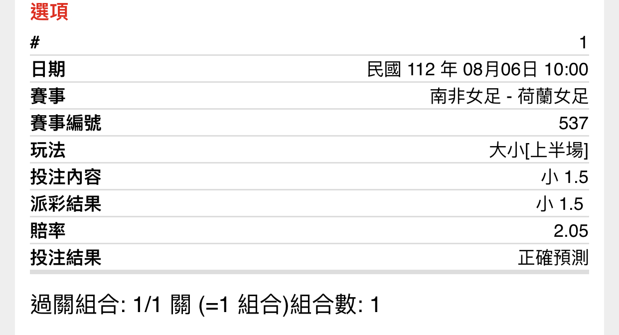 → Taiwan007: 收上半1.5小,全場2.5小 42.77.231.207 08/06 12:00