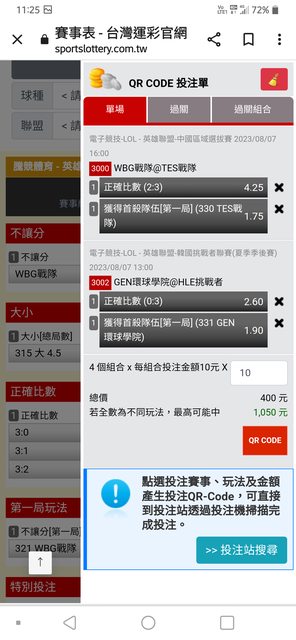 看喜歡的賠率。